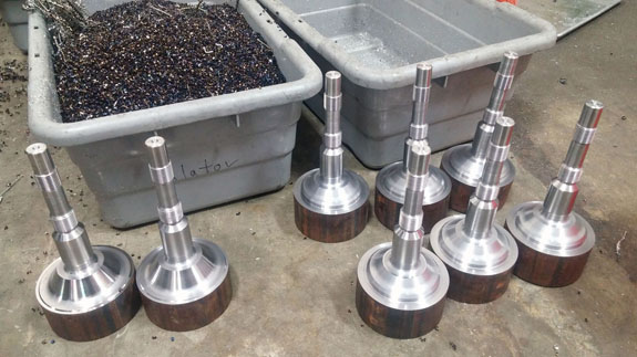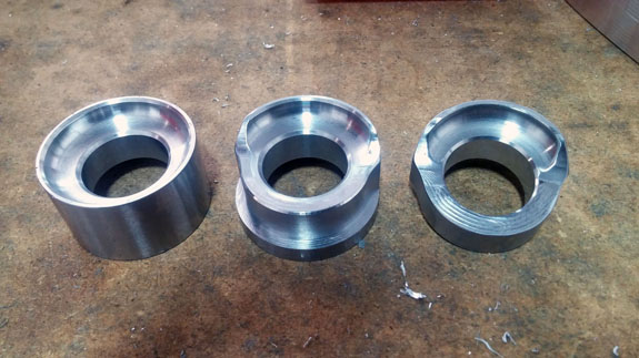Everything seems to move as intended, so that's good. We're finalizing a lot of sheetmetal (interior paneling, firewall, shifter linkage parts, steering supports, drysump tank, etc.) and are about to order it all. As with everything much work remains but much is now done. Feels good. There is another Europa D47 is the pipe after this one, and we're still looking for someone to order the Mini version. In the meantime, lots of parts are getting made every day. I've mentioned elsewhere that we're doing two sets of the new GTC uprights. The hubs are now ready for splining. They start out as 47 lb chunks of alloy steel, make lots of colorful chips, and are now ~4lb 'blanks' which will next be splined, then drilled, tapped, machined for retainer feature, then heat treated, plated, and baked.