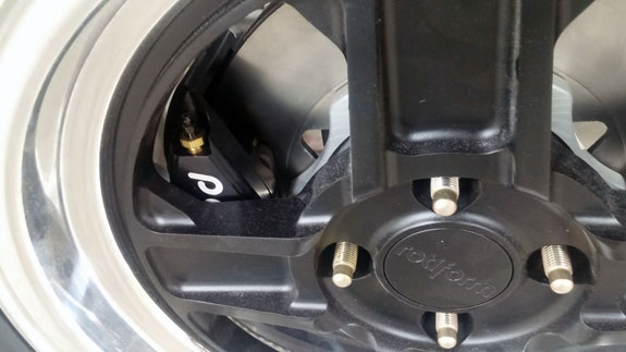 We've finally got to test-fit complete corner assemblies with wheels, brakes, etc. Clearance from calipers to wheels is actually bigger than I expected. It measures out almost 0.1" vs projected 0.05". Clearance is clearance.