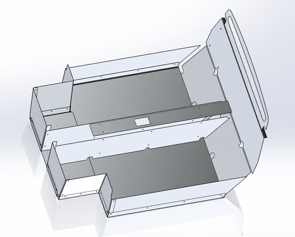 Laser-cut aluminum paneling is what we use in all our other cars, so the technology gets applied here as well. Designing the panels is a 3D puzzle and things like being able to install them and various equipment have to be thought through. The design is now done and actual parts will be coming shortly.