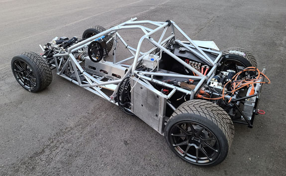 Wheelbase: 95" Length: 145" Width: 80" Height: 38" Weight: 1,600lb-2,200lb Seats: 2 Gasoline Engine options: GM LT1-LT4 480-1,000hp Electic options: single or dual Cascadia IM-375 800V 500-1,000hp ModBatt modular 800V battery 40-60KWh on-demand configurable Drivetrain: AWD or RWD Construction: Chromoly steel tube space frame, fully independent pushrod triple shock suspension F/R