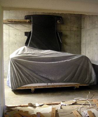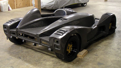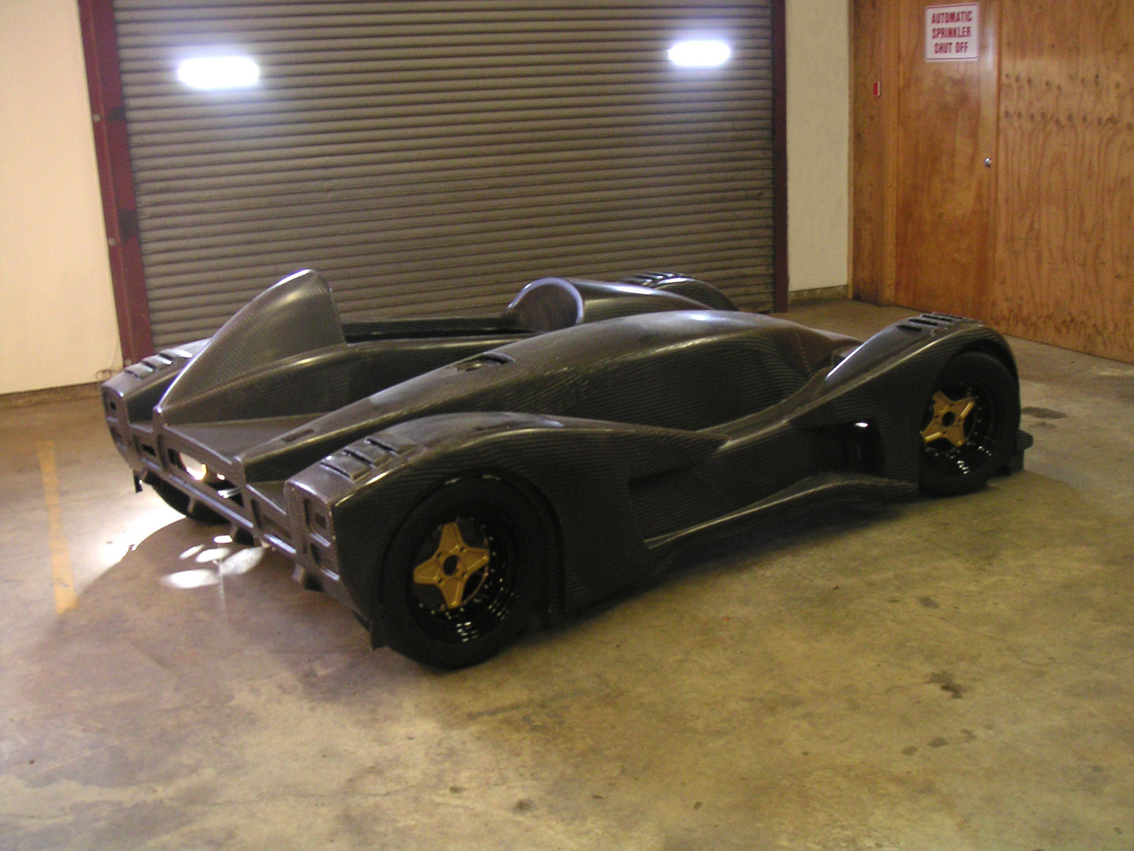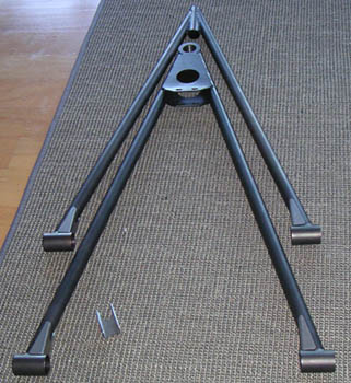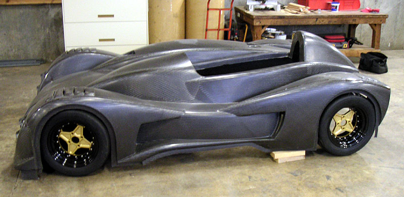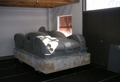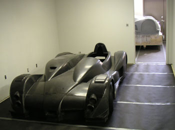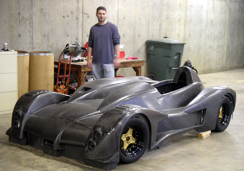 Now I need to get these welded on and then the arms should be ready for powdercoat. In the meantime, the frame is done in California and off to powdercoaters there. In a fit of blatant plagiarism (or sincerest flattery) I've decided to borrow the color scheme from Kurt of Kimini fame and go with grey chassis, black panels and red suspension arms. What can I say... The frame should be here in about 2-3 weeks. Cool. 02/19/05 A few things are happening. I've been working on the space I rented and the demolition is almost done. There are a few more days' worth of work but before long I should be able to shift the focus back to the car. In the meantime, I couldn't resist a gratuitous pic (click on it for hi-res 1600x1200 version or right-click and 'save as').. The suspension arm reinforcements should be done in a couple of days, then it's off to powdercoaters for those. More and more things are coming together. Cool. Also, someone had pointed out a potentially useful version of carbon material from SP Systems (thanks Mike). It could reduce the labor cost in bodywork and improve the surface finish significantly. I've talked to Composites Unlimited about it and they're looking into getting some samples for tests. As it is, the current body will take quite a bit of prep to get decent surface finish. Apparently that's just the nature of prepreg technology that I used. Best surface finish comes from gelcoat and wet layup but the weight penalty would be significant, about 50 lbs. There are also surfacing films and such that could be experimented with in prepreg and there is the option of going with E-glass and 1/8" core which then would allow the use of primer. Lots of things to consider. With an eye towards production I'm having a lot of discussions with current and potential vendors to see how I can reduce costs, reduce weight and improve quality. These things don't have to be mutually exlusive (to a point, of course) - just a matter of careful design choices. Now that I have a baseline I can refine things from here. It's looking pretty exciting actually. Fun stuff :) 03/02/05 The frame is back from powdercoaters in California and is awaiting shipment to Portland.