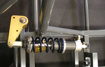 Of course a lot of design and fabrication remains - all the sheetmetal panels for the frame, front and rear crush structures, body and floor mounts, interior, steerig column (this just needs to be made), shifter, gas pedal, some internal composite panels and such. Then, for production I need to design the carbon tub, the belt drive system, new diffs and probably a whole host of other items. I've got my work cut out for me! But progress is visible, tangible and exciting. I'm looking forward to getting it all done. 03/11/05 Picked up the suspension arms from powdercoaters - they look great. Now I need to press in bushings, install bearings and rodends, then they can be assembled to the frame (although I'll wait for that last step until I have the alum panels riveted). I also installed wheel bearings in uprights by heating the latter in a toaster oven to 350F - the bearings slipped right in. Gotta love CAD and CNC machining :) Speaking of which, I test-fit one of the shocks, the one that could potentially have a clearance problem to the rear rollbar. Lo and behold, it has 0.2" clearance, just like SolidWorks says. Neat. Steering rack goes right in too. Next were the Timesert inserts in the uprights and the diff mount brackets and now those are in.