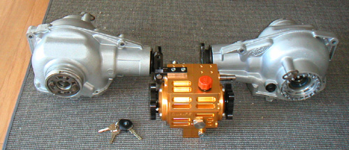 Cool. 06/20/02 I have finalized the choices for front, rear and center differentials and the reversing box. Found a source in England for all the above, and placed an order today. One thing I realized is that the differentials dictate a right-hand-drive setup unless I want to invert both of them. RHD may actually be an attractive option, since it is the preferred layout for race cars, and if I were to ever start selling these the primary markets would probably be Japan and England.... Not a final decision yet, but looking like RHD as of right now. A preliminary spreadsheet of components shows that weight should be close to target, and cost similar to the Elise. It's moving forward :) 7/11/02 The first of the drivetrain parts arrived from England - a reversing box and two differentials (the center differential is still back-ordered).