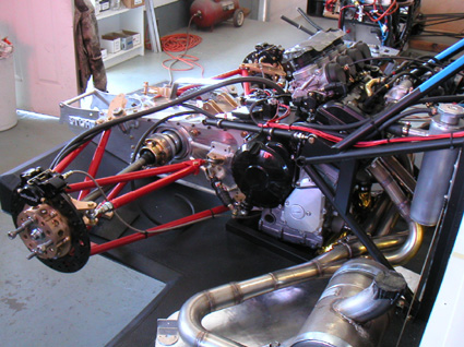 The general concensus is that 300 hp is not a problem, even on pump gas. Taller 5th and 6th gear is also a common modification, as is reinforced clutch. So in all I'm not trying to do anything too far out of the ordinary. If I recall correctly, my favorite car in college, the Renault R5 Turbo, had a 1.2 liter engine (vs 1.3 for the Hayabusa), and came stock with 180 hp, optional 225 hp tune and some versions up to 400 hp. All that using 1985 technology... So yes, this should be not only doable but reliable. Waiting for quotes now. I'm still struggling with the choice of differentials. Took apart one of the 'WRX' units only to find that instead of the limited-slip WRX diff it is an open diff from a standard Impreza. Dimensionally they are great, but the weight is a real issue. An extra 40 lbs in this car is a 5% weight penalty. Plus I suspect the weight is going to be an issue with some other components as well. The driveline is proving to be a real challenge. In addition to the diffs the choice of drive from reversing box to center diff and couplings between all the pieces is still up in the air. Yes, of course there are easier ways to do this - but that isn't the point :) 8/07/02 Paid a quick visit to Lee Stohr's workshop, to see how his latest DSR construction is going. The car is very impressive (hope one day someone will say that about mine ;)