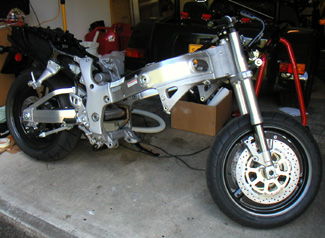 It's great to have people like Lee here locally. He's been through the component selection, the design, subcontracting, development... And he's living proof that it CAN be done. Cool. 08/20/02 Going through a great debate - the source of the engine. Based on my experience with the Westie, I've decided that I definitely want a brand-new motor for the dp1. It would also be a requirement if I were to start selling them. Soo... The Hayabusa motors cannot be bought from a dealer. I can get ZX12R motors, which are equivalent, but the basic block costs $5K and I then have to spend another $3K on parts to make it run - downgrading the ignition coils and having to mess with custom ECU maps in the process. Another problem is that the source which I found in England for Hayabusa dry sumps doesn't have a ZX12 one. The people who supply the Kawi motors are working on one, to be available early next year at a price that's likely to be $1K more than the English 'Busa system. Also, I think I want to use the dashboard, turn signal blinkers, windshield and maybe a few other items from a bike. Therefore it's looking like I'm going to buy a brand-new Hayabusa and take it apart, then sell the parts I don't need on e-bay. Found a source for $10.2K out the door (great to have no sales tax here in Oregon). It's 95% decided. I'll keep thinking it over for the next two days... In other news, I've all but given up the search for proper shaft-driven differentials, and decided to go with belt drive instead. It will be more efficient (96% vs 94% for the shafts) and about 60 lbs lighter, at a similar overall cost. I'm making some headway on other driveline components, like CV joints, halfshafts, flanges and brakes. Waiting for a first-cut suspension geometry design from Stohr. The final component choices will dictate chassis design. This is quite a project.... 08/22/02 The engine debate is over. I've ordered a brand-new 2002 Suzuki Hayabusa, due to arrive in a week or so. I'll probably ride it for a month or so as I've always secretly wanted one but was aftraid it would be too much (the thing does almost 200mph, 9.6s in the quarter mile and will power wheelie in the first three gears - bone stock, right off the showroom floor). No, I won't be exploring anything near its full potential. I'm man enough to admit I'm nowhere near man enough for the job ;) Now put that motor on 4 driven wheels at similar weight, and it might be a different story... 08/31/02 Picked up the Hayabusa.