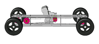 My car would be very similar in construction. A few conversations with Lee confirmed that the project is doable and he would be willing to undertake the construction and some of the chassis design (as well as small-volume manufacturing, if it ever came to that). So it is now official! The goal is to have the chassis and drivetrain complete by December, and have the car finished in May 2003. 05/29/02 Did some quick CAD in Solidworks to check dimensions and proportions. Nothing too elaborate (I'd have to really work with the surfaces to get it right), but another confirmation that this thing would work :)