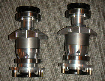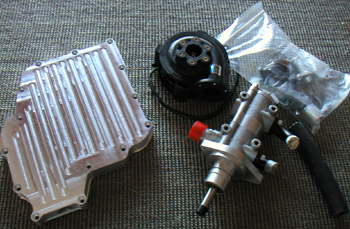 Now I can get moving on designing the mounting plates. The diffs should be arriving in a couple of weeks. Halfshafts are getting custom made because of their length (24") so that will take a few more weeks. Also decided to go with an integrated Quaife reversing box and center diff to eliminate the central chain. Of course the standard box will need modifications and custom flanges to drive sprockets for the chains to front and rear, and it will also need custom gearing. The good thing is that all of this is doable, with the obvious downside of BOTH time and money. But gotta do it right. I finalized the choices of most braking components and placed the orders yesterday. The rotors are 10.25" vented front and rear, the front one being 1.15" thick and the rear 0.75". Four-piston calipers at both ends, of course, with a separate mechanical parking brake caliper for the back. Hopefully this will provide adequate braking for a car this light. 01/02/03 Some of the parts are starting to come in. The dry sump oil pan came back from England, finished this time. Except that they promised to add a fitting for standard oil cooler hose and forgot. Ah well, I somewhat expected that. The diffs also showed up.