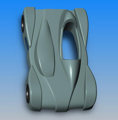 OK, I'm done tinkering with the bodywork for the moment. Need to take a break, maybe go work in the garage for a bit. The Westie is still in need of much maintenance and I've been neglecting it... 04/25/03 Something bothered me about the design, and an e-mail comment today helped me figure it out - the cockpit area was just not right. Since I was going to make changes I went through the SCCA rules for cockpit dimensions, rollcage and bracing. At present I don't intend to race the car, but would be nice to have the option. Plus those regulations are there for safety so it is really a wise thing to take advantage of them. With that in mind I redesigned the area around the driver and besides being safer I think it looks better now, too. With a 1.0L engine (from a GSXR1000) the car should be eligible for DSR competition.