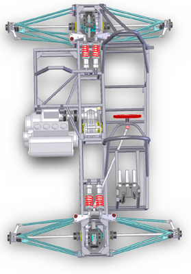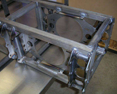 One thing I learned is that if you're going to press seals into the bores it really would help to chamfer the edges of the bores just a bit (maybe 0.025"). As it is, seal installation is quite a chore. Live and learn I guess. Later this week I'll pick up the plug and the floor from Composites. And maybe the first article bodywork soon after that. That will be a BIG step. 01/27/05 A lot of detail work is taking place, most of it on the frame. Engine mount, brackets and the like. Some are not readily visible in the picture, but trust me - it's a lot of work. There are now over 60 pages of production drawings for the various custom-made parts.