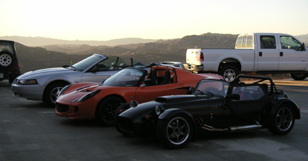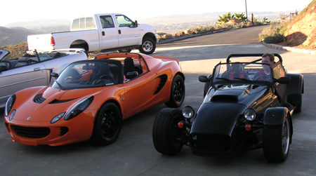 At this stage of completion the frame should be 66.5 lbs according to SolidWorks. Phil guessed 65 lbs and the scale said 62 - not bad at all! Very happy with progress on this item. Supposedly the body and floor molds should be done in a couple of weeks, so with luck I'll be able to say the same about those - if a few months later than hoped for. A few car friends are down in San Diego so I used the occasion to catch up with some of them. Shinoo dropped by with his week-old Elise (already with titanium exhaust and carbon diffuser - sounds sweet!). Also, Scott, the guy who bought my Westie, had just recently relocated to the area so he came up as well. It was very cool to see (and hear!) the car again, now with some 8,000 more miles on it just 4 months later. This is compared to 800 miles that I put on it in two years of ownership. Scott is a REALLY hardcore enthusiast. From Portland he drove the Beast to Seattle, then down the coast to San Diego, then to Phoenix, then Little Rock, then back to SD. Wow.
