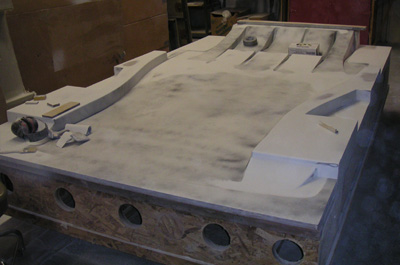 The floor mold, sitting in another building, is also coming along but isn't quite done yet.