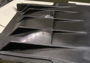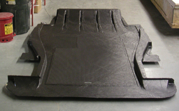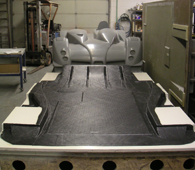 The floor mold is finally done and the first floor is being laid up today (I had to document core and hardpoint placement and overall layup schedule - more busywork). Should be done some time next week at which point they'll start on the first bodywork. Supposedly the body molds came off the plug today, we'll see. So things are moving forward... 01/21/05 The floor is finally almost done. At least I have a part (still needs some trimming and tweaks). It's a bit flexier than I anticipated but it'll do for a first try. The complete floor weighs 34 lbs which is right in line with expectations. Right now I'm finalizing the brackets and such for the frame so the timing is good. The MDF mold is pretty much a failed experiment - wouldn't recommend it to anyone. Supposedly there's hi-temp foam that would work better for a couple hundred bucks more (out of $10K or so). Maybe I'll try that later on a smaller part. In the meantime, it'll be interesting to see how well the dual-phase diffuser works, if at all.