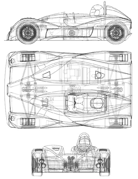 Wheelbase 80.5", Width 70", Length 113", Height 39" (top of rollbar), Ground Clearance 2.5" Wheels 13x8, Tires 225/45-13 R compound or 20x8 race slicks (All specifications are just targets, of course! - but they HAVE been reality checked :) This is my most ambitious project to date, aside from a long-ago attempt to design and build an airplane, a task whose magnitude I had grossly underestimated. Now, with a lot more experience in running, maintaing and even assembling vehicles I feel much more confident that I can pull it off. Having enlisted the help of people that have designed and built successful racecars from scratch I've got all the basics to make it happen. The rest is up to me - and I'm willing to give it a shot. I had originally targeted to complete the project in about a year, knowing all the while that was an extremely aggressive goal. As the design evolved it became apparent that I would be lucky to get it done in two years - so that is the current goal, to have a driveable prototype ready for development by May of 2004. Looking through all the pages that track the progress it is clear that the extra time has actually been to the project's benefit. I have had the opportunity to really look at various ideas and details and tweak them to the point where I can look at the design on any given day and not wish I'd done something differently. This is something that can only come from actually trying countless variations and settling on the one that works best, at least in my eyes. As of the end of 2003 I'm guessing I have a bit over 1,000 hours invested in the project and about $40K, with roughly as much again to go before it's done in both time and money. I'm being open with these numbers because that is an integral part of the whole process. Anyone contemplating a similar project should consider the resources required (yes, personal time and effort can be substituted for money to a large degree and being more conservative with the design can also make it cheaper but not necessarily so). Considering that a fully sorted nationally-competitive DSR car, whether from Stohr, Radical, Merloy or someone else, would set me back around $60-65K I'm certainly not saving any money by building my own. To me this project is a form of self-expression and a way to learn things that can only be learned by doing. I look at it as an alternative to getting a Masters degree in vehicle design - about the same time, about the same money but a whole lot more fun and I get a car for graduation :) As such, it's really quite a bargain.