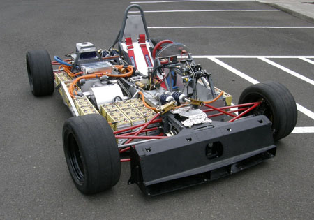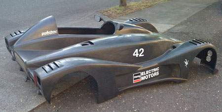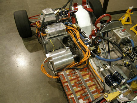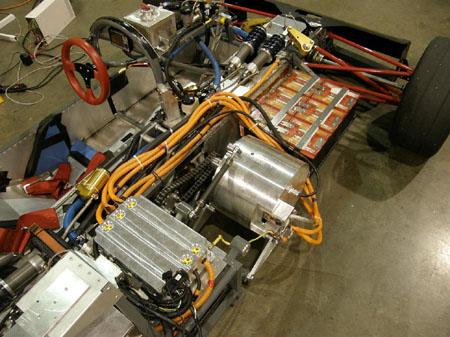 07/05/10 A good test at Pat's Acres. The car ran well and is quite fast with lap times not too far off those of the dp4. Of course this is a very tight course and neither car is fully sorted yet, but the dp1/e is a fun machine to drive! :) Here's a video: The car is back at RMS for some software tweaks and if we're lucky the new motor housing from Remy will show up tomorrow so we can install it. The motor is a LOT smaller than the test housing makes it look. The test piece was hurriedly made for a stationary rig and weighs about 65 lbs, whereas it only needs to be 10-15 lbs or so. The bodywork will get installed Wednesday morning most likely.