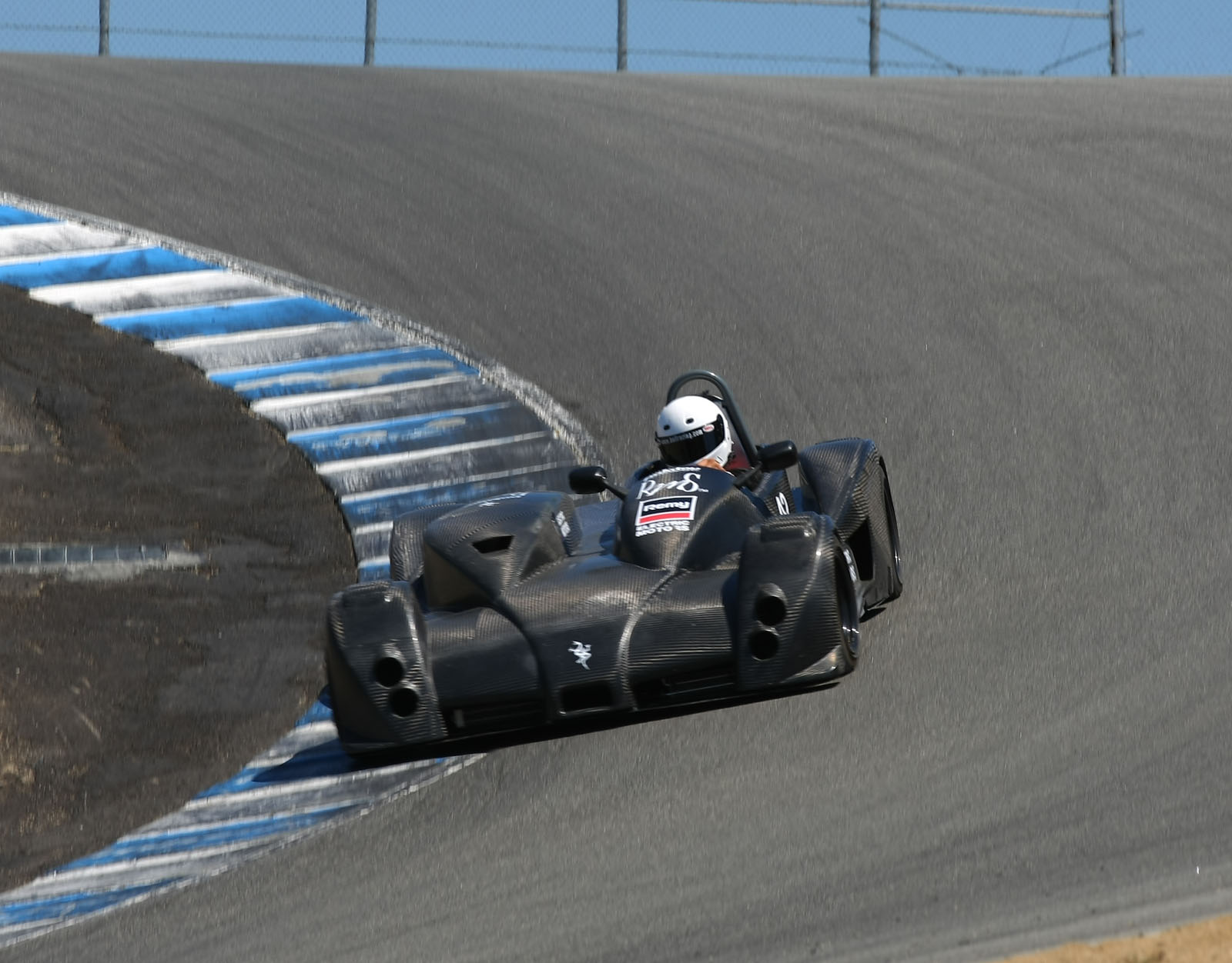 I find a driver for Vista (my computer is Win7-64) and it is still a no-go. There is a Best Buy 25 minutes away that's open until 9 pm. It is 8:31. M and I set out in the Focus and get there just in time. There is an adapter they sell. We test it in the store on a 7/64 platform and it works. Of course the software is on a CD and my computer doesn't have a drive. So I buy a USB memory stick and the store clerk is kind to transfer the programs while I wait. We get back at 9:30 just as security is kicking us out for the night. At least we now have a working serial adapter and a drivable car. 07/11/10 Race day. The time trial is late in the afternoon. I'm still running the dp4 today so part of my time is taken up by that and I'm still slow. Our originally scheduled fast driver had to leave so it's looking like it'll be on me to set a fast lap, which is not good. Fortunately we find a replacement - Jonathan Frost is an instructor here at Skip Barber, knows the track and is not put off by the experimental nature of the dp1/e (he's a longtime reader of the site which helps). Of course we don't yet have a car but we now again have a driver. First thing we attempt is talking to the controller from my laptop which thankfully works. And it's an easy fix, too - the torque limit had been set to half for some reason! Just a few keystrokes and we have power. Next task is to mount the floor.... which doesn't fit. 'Just cut it' I tell Tristan. Which he does and some time later, using the trailer lift to raise the chassis, it is done and the bodywork goes on. Sort of. But good enough. M starts applying decals.