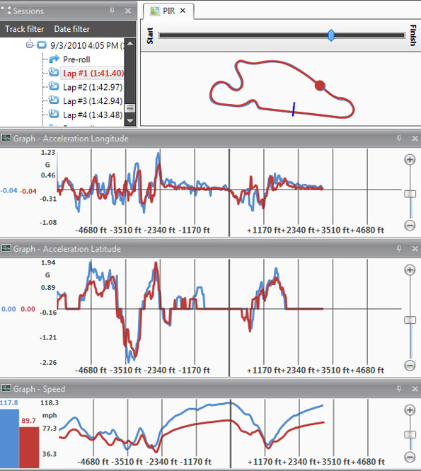 Of course the dp4 is running way below its max power also, but the speed difference is dramatic. The graph also shows that I could have carried more speed through 10-11 in the dp1/e :) I've a ways to go as a test driver still. Lately when in the car I spend too much time being an engineer whereas I should be 110% driver and leave the engineering for when I'm not on the track.