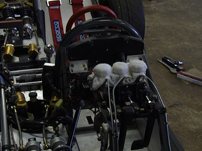 And the rest is history. Whew. Unlike a Radical, you won't need a crew for trackdays :) Now everything else falls into place like it was supposed to, even the exhaust will be easier (tailpipe can stick out farther now that body is not dropping vertically on it). Still a lot of work to be done and I definitely won't make the lunchtime track opening tomorrow but then the weather has been lousy anyway. So Monday I finish the floor and body and Tuesday I hopefully get the exhaust wrapped up. Ambitious but not impossible. Wish me luck! |