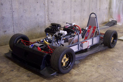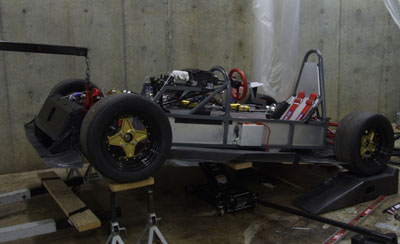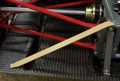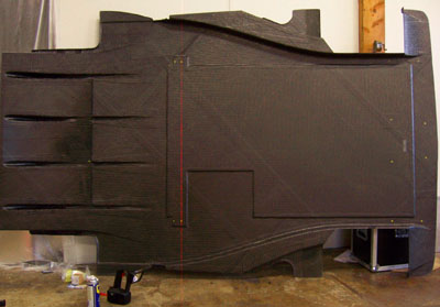Tomorrow I will continue working on the undertray. After the mounting scheme is finalized I need to come up with 'fences' so that any spilled liquids are contained and don't go sloshing around under the driver, under the headers or both. Additional fences will attempt to route the air to/from the front brake and perhaps a better attempt will be made at containing the dust. The forecast for the 18th has improved a bit, plus there is a chance I might be able to take a couple laps on the 16th. We shall see. Lots to do before then. 10/13/06 Another full day at the shop. Started by test-mounting the floor. Some of the mounting holes still need to be tweaked. Also ordered some supplies to finish the installation. They'll be here tomorrow. Having to pay for Saturday delivery is a pain but that's what I get for not planning well enough in advance. Of course the nature of the project at this point is that I don't know what I'll need until I need it. So it goes. The existing hardware and mounting points did let me get the thing bolted up enough to check the overall fit and then do a test install of the body.