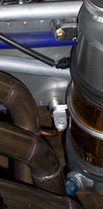 10/12/06 A lot of time spent today but only a short update. First, finished plumbing the fire system. The two nozzles are located on either side of the engine. First, a cone pattern one, points on top of the fuel tank and at all the fuel lines. The second, with three holes forming a horizontal shower pattern, points at the headers and oil lines.