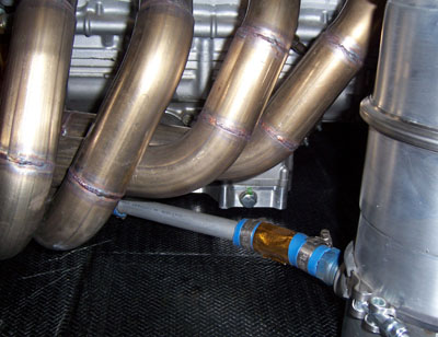Tomorrow, more of the same. But this feels like progress and it's good to have focus in the form of a calendar event (track day in this case). I even told my clients I'll be unavailable till the 19th :). 10/14/06 Work continues. Received the supplies today so once more headed to the shop to tackle the project. Part of the issue is that I'm designing things as I go along. So quite a bit of time I'm just sitting (or standing) there staring at the thing, but all the while my in-head 3D simulator is furiously spinning things around, trying new designs, checking for clearance, scrapping them, starting from scratch. Every now and then I'd take a few steps to the side or maybe unbolt a part and move it around.... Exhaust is case in point. I mentally tried five different muffler locations/orientations, several exit pipe designs, even contemplated scrapping the muffler altogether. The fit is tight.