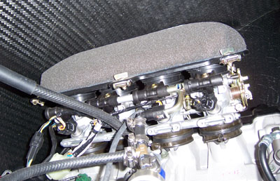 Another point of concern was whether the air filter would clear the body. It touches, but only just - this will do for now, I'll fit the proper intake manifold later. Not inclined to mess with it right now. Sticking the camera inside the body shows what's going on in there.