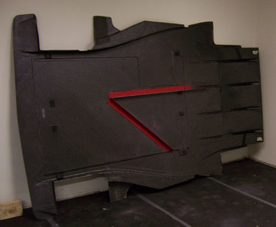 Speaking of the floor, I went ahead and enarged the mounting holes that needed it and then epoxied a couple barriers to the surface. The purpose of the barriers is to keep any spilled fluids from going under the driver and also to route the front brake exit air to the left side of the car. Hopefully it'll help. Was hoping to mount the floor back on the car today but didn't get it done. More to do tomorrow.