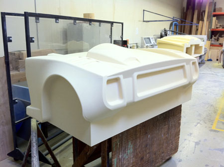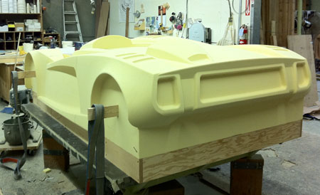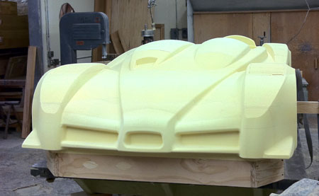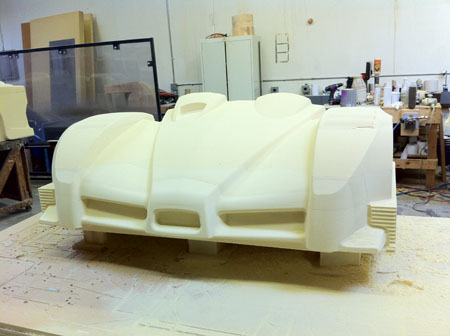 When you look at the pictues above, keep in mind that's a 430hp car... 02/04/11 The plug is done. This is the first time I get to see the whole shape 'in the flesh'. Yep, it's a lot sleeker and more aggressive than dp4 :) Which was the intent. It's a very different animal and the trick is to clearly separate them while keeping the family resemblance. I like how it's turning out. I also have to mention how good a job Willamette Pattern has done. They normally do patterns for intricate castings and the quality of the work is first-rate. And it was on time.