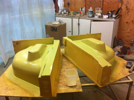 Pilot Pod plugs are now sprayed with mold release (needs another coat in the pic) and Tristan will lay up parts later tonight.