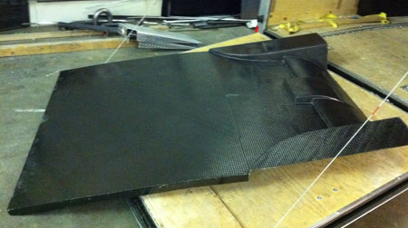 It will eventually get painted but for the first drive we'll leave it in bare carbon. I'm quite pleased with how it turned out. We'll be fitting it early next week, after the engine is back in the chassis. In the meantime the floor molds are done and the first floor (also all carbon) is due in about 6 days.