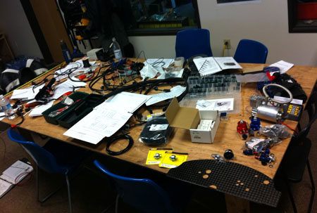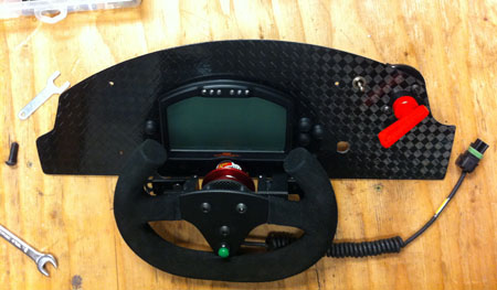 The oil and water plumbing are now essentially done, fuel has been started, electrical is 95%, pilot pod fitment about halfway. Tomorrow is a busy day. I haven't had a day off in a month. 09/14/11 It's been too crazy for updates lately. Here are some highlights though... Over the weekend we fitted the Pilot Pod and made sure Karl fits in it. Perfectly, in fact. Yes, the entire thing will be carbon (and some Kevlar) - the sides are just temporary pieces to verify fit, molds will be made from them shortly and then production parts will be made in the molds.