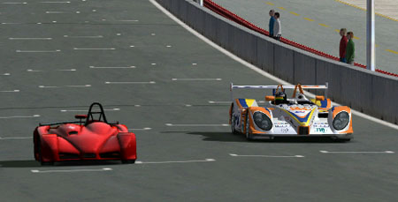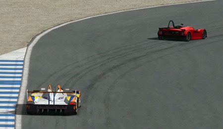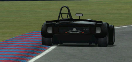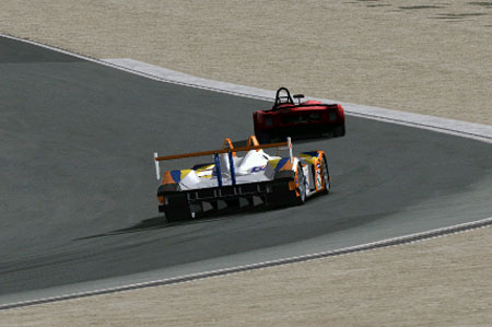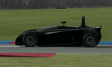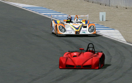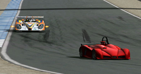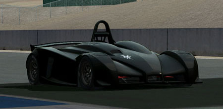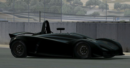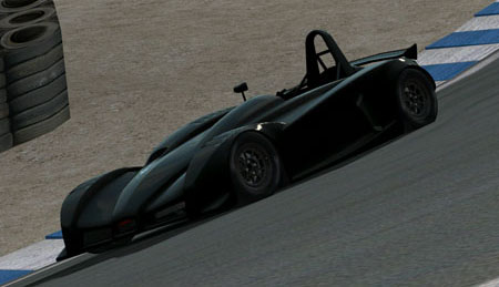 Both cars have sequential gearboxes with electronic paddle shifter and full underbody ground effects although it's a safe bet the Porsche is producing lots more downforce. So take an LMP2, downsize a bit, throw out 700 lbs, add AWD and you've got a D1. And it's still docile enough to be driven on a damp kart track :) Also, anyone who can afford a plain garden-variety Porsche GT3 or a used Ferrari F430 can buy and regularly track a D1. To further the LMP comparison I loaded both thd D1 and the RS Spyder into a simulator and ran them at Laguna Seca. Both post nearly identical times of 1:12 in the sim when driven by AI. Makes sense, with the Porsche being heavier but having better aero. Oh yeah, the sim.... The D1 (and D4) will both be available in SimRaceway when it's officially released. So those interested will be able to do their own virtual comparisons. Below are some screen grabs from a test version of the car.