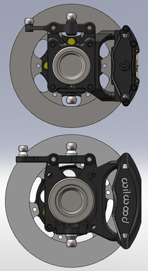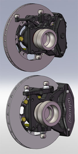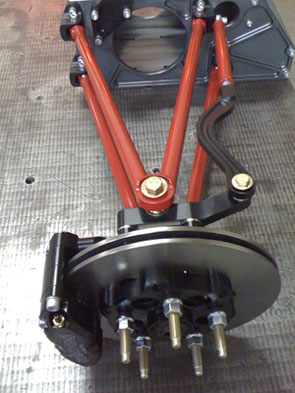 The wheel studs are now press-in ARP pieces, similar to but longer than the ones I use on the Atom uprights. Both uprights have shims for camber adjustment without affecting toe. The updated pdf dimension drawings and installation 3D CAD in IGES format can be downloaded here. These are the current 'standard' configurations but an almost unlimited variety of others is possible. Email me with any questions. 04/27/10 I now have a few sets of the GT uprights in stock and the first set of 4 has been shipped, with a couple more scheduled to ship in the next few days. The uprights are modular and therefore easily configurable but this is the base configuration: