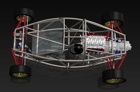 The goals of the design are basically to address what I personally consider to be the main shortcomings of the Atom. The most important objective is to provide a rigid, safe 'survival cell' for the occupants. To that end the dp2 features an integrated rollover structure that isn't an afterthought. The chassis extends all the way to the floor of the car and is braced underneath and across. There is also a provision to add a windshield (and later a fully enclosed cockpit) that is a part of the design from the start. Besides addressing safety and rigidity I wanted to accommodate a wide range of engine choices and higher horsepower levels, up to 600+. So the design was created around the Chevy LS 'crate motor' located longitudinally midships. With enough room for an engine this size, other smaller powerplants (including transverse ones like Honda K20) will fit easily. The next challenge was to properly enclose the cockpit while still allowing the chassis to be an elegant part of the visual design. A set of carbon body panels that fill in the spaces between the tubes but still stay on the inside of the chassis is my solution.