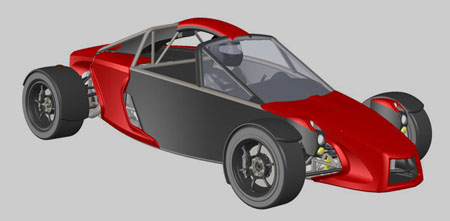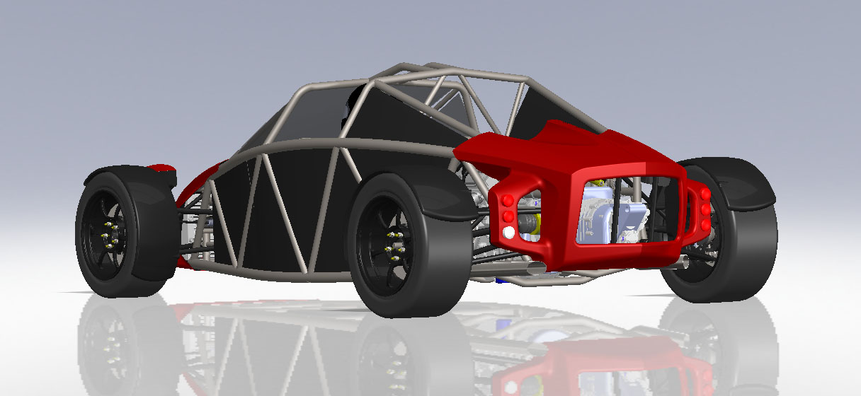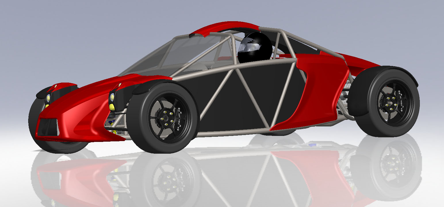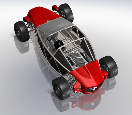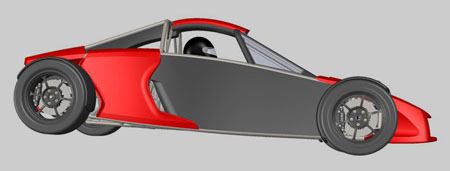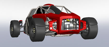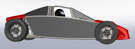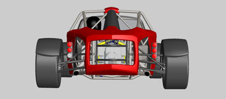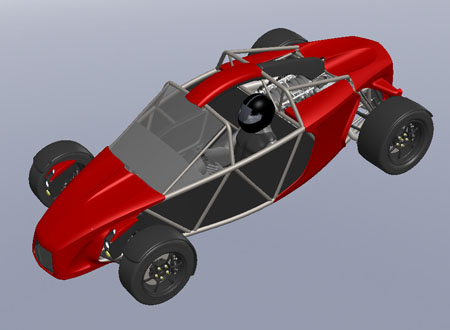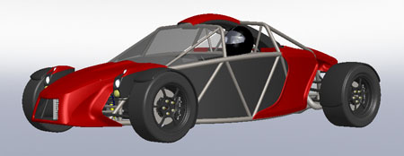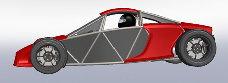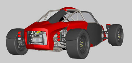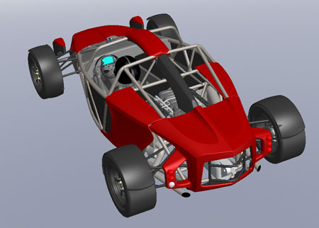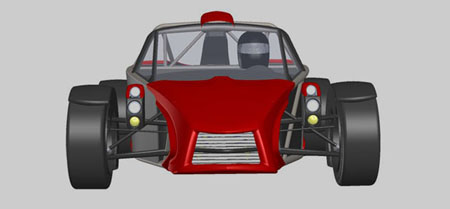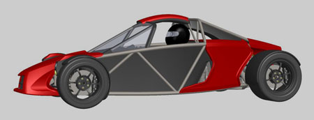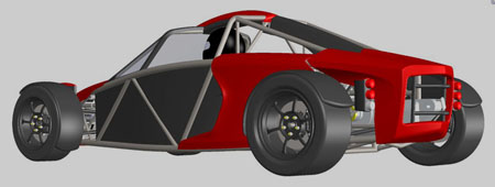 Now that the styling is reasonably nailed down I was able to finish the design of the bolt-on crash subframes for the front and back - you can see them in the picture below (click for larger). That was the last piece of the frame puzzle and now we can get on with making those. 10/22/11 September / October seems to be the time for first drives for me. Original dp1 Sept 18, 2006. Bikini Sept 17, 2007. First D4 Oct 17, 2009. D1 Oct 14, 2011. Only the Westie broke with that tradition with an April 27, 2002 initial run. With the D2 I'm aiming for a winter 'birth'. To that end much additional progress has been made on the design. I'm learning from previous experiences here - the D1 does not share a single part with the dp1 prototype (this is not exaggeration, just fact) and the production D4 while similar to its prototype in reality shares only a handful of components with it. Of the 64 tubes in the frame only 3 are the same between D4 proto and production cars. My goal is to avoid this with the D2 to the extent possible, seeing how the first car is going to a customer. So I've been approaching it in 'bursts', with a period of intense design activity followed by a cooling-off break and then coming back to it with fresh eyes. This approach has been paying off and there have been lots of revisions, many driven by lead customer input. Since the last post the wheelbase has grown 2", legroom increased 1", engine moved 3/4" down and 1" forward, there's revised tubing under the engine to better protect the oil pan, tail is 1" shorter, crush structure tubing is revised, windshield is modified, bracing around the cowl is new, and so on. It may not look radically different but the changes are what would normally take place between prototype and first production unit. NOW I think we're finally ready to pull the trigger on the frame tubing. Will have one more final review Monday.
