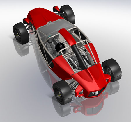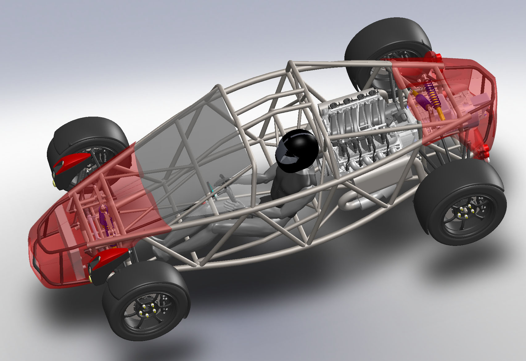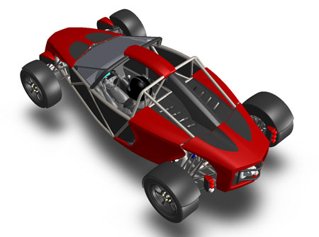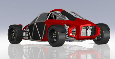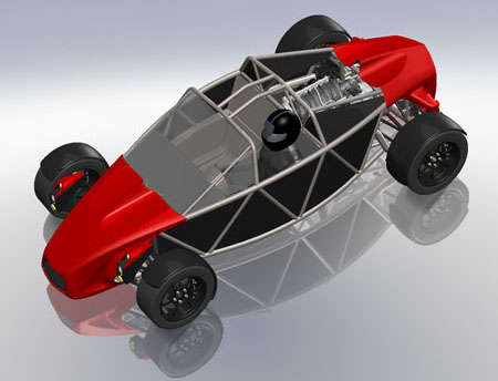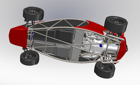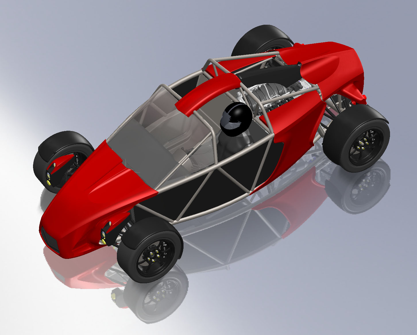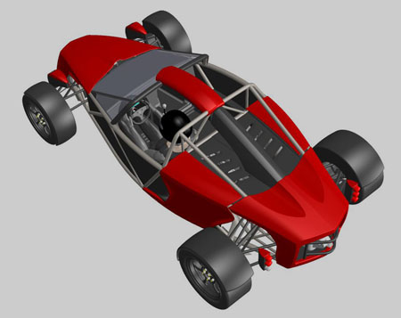 Now that the styling is reasonably nailed down I was able to finish the design of the bolt-on crash subframes for the front and back - you can see them in the picture below (click for larger). That was the last piece of the frame puzzle and now we can get on with making those. 10/22/11 September / October seems to be the time for first drives for me. Original dp1 Sept 18, 2006. Bikini Sept 17, 2007. First D4 Oct 17, 2009. D1 Oct 14, 2011. Only the Westie broke with that tradition with an April 27, 2002 initial run. With the D2 I'm aiming for a winter 'birth'. To that end much additional progress has been made on the design. I'm learning from previous experiences here - the D1 does not share a single part with the dp1 prototype (this is not exaggeration, just fact) and the production D4 while similar to its prototype in reality shares only a handful of components with it. Of the 64 tubes in the frame only 3 are the same between D4 proto and production cars. My goal is to avoid this with the D2 to the extent possible, seeing how the first car is going to a customer. So I've been approaching it in 'bursts', with a period of intense design activity followed by a cooling-off break and then coming back to it with fresh eyes. This approach has been paying off and there have been lots of revisions, many driven by lead customer input. Since the last post the wheelbase has grown 2", legroom increased 1", engine moved 3/4" down and 1" forward, there's revised tubing under the engine to better protect the oil pan, tail is 1" shorter, crush structure tubing is revised, windshield is modified, bracing around the cowl is new, and so on. It may not look radically different but the changes are what would normally take place between prototype and first production unit. NOW I think we're finally ready to pull the trigger on the frame tubing. Will have one more final review Monday.