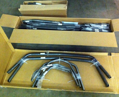 I keep thinking I need to do something sexier with the lights but the exact solution hasn't popped into my head yet. I sketch stuff occasionally but so far nothing that would be an improvement. Not a big concern at this time though, lights are easy to change even after the car is built. I do have the actual projector units here - nice Hella 50mm halogens. 12/05/11 A few developments. The first set of bent tubes is here, arrived a couple days ago actually. They are made by a different process than the rest of the frame and so come from a different vendor.