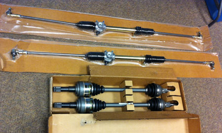 Also the steering racks for the first two cars have arrived. These are custom made for us. The axles in the picture below are for the Stiletto but the D2 ones will be very similar except for inboard stubs. They're rated for over 700 hp.