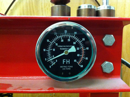 The press has a force gage that seems to be in the ballpark accuracy-wise. It can definitely tell us if the design is close to where it needs to be or way off. A bit of pressure and the part does yield...
