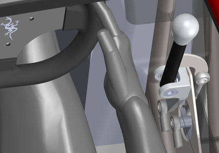 Controls are next - I'm finishing up the CAD on a fully custom pedal set (which will also be available as an item on our site eventually). Also the steering, shifter and other bits. 09/24/12 This is the stage of the project where a lot of the detail work takes place. Sometimes evolving a particular system to its logical conclusion forces a significant redesign of some others. It's an iterative process.