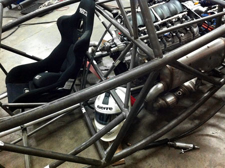 The additional tubes are set up so that for customers wanting to have the 'exoskeletal' look they won't be visible, leaving the styling cleaner. Radiator mounts and front/rear crush structures are next as far as the frame goes. The radiator is a high-efficiency dual pass unit (custom, of course) and will be fully ducted to make the best use of available space. Based on the experience with the v8 Atom which has similar power output the radiator should be adequate, but I have backup options in case testing proves otherwise. I'm also strongly considering moving the fuel cell from in front of the engine to between occupants. Although this would eliminate the low-cost option of a baffled aluminum tank and require the use of a proper bladder-type aluminum enclosed cell, I think it is a better solution.