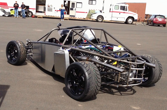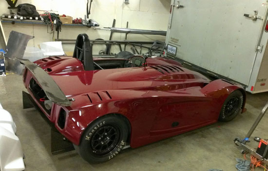 One reason we're working so hard is that we're about to embark on a west coast track tour. Karl is flying in to drive his D1 (see the that page also) and Pete, our second D2 customer, will drive our demo D4. We're also hoping to have his D2 partially completed, enough so it can be driven, but we'll bring it as a show-and-tell piece regardless. The dates and places are: ThunderHill May 10th Streets of Willow May 12th Sonoma May 14th ThunderHill May 17th Laguna Seca May 19th That's a lot of work to be done before then and a lot of driving. M and I will go while Tristan and Jay will stay and continue work on the remaining D2s. Expect more frequent posts going forward :) 05/09/13 Well, the first planned track event is tomorow and while the D1 and D4 are ready the D2 is not, so we elected to stay and work. This means we'll be skipping the first Thunderhill day and the Streets of Willow but are still planning to do Sonoma, the second T-hill and Laguna. A lot has been done. The D1 looks great in its new paint and even got its bead seat upholstered. It has all the upgrades that we've learned as a result of Pikes Peak effort and all of Hartley's latest in the engine too.