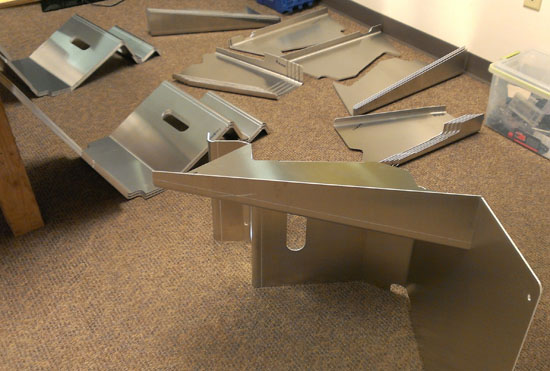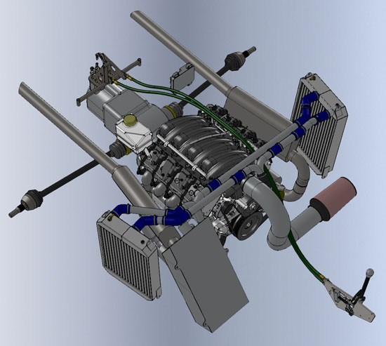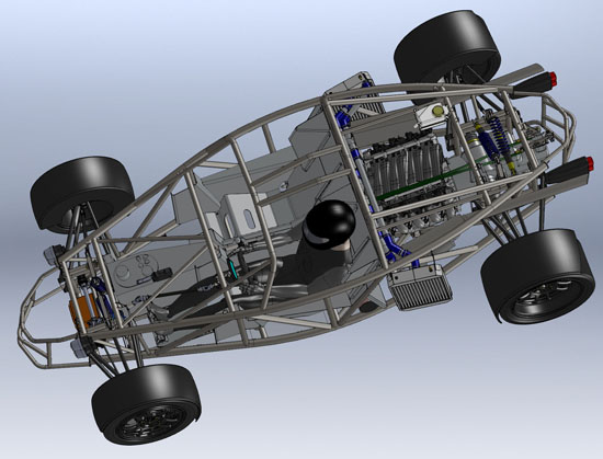 Skipping the powdercoat was a good idea. Once John got down to installing the engine he discovered that the LS7 headers interfered with our standard engine mounts. Using the GM mounts requires cutting and welding the mount attach points on the frame. After this install is done we'll incorporate changes in future cars so that they are LS7 (and eventually LS9) compatible. You can follow John's build on his blog. While the other frames are getting finished and powdercoated I've been working on a lot of details - from designing interior panels to moving the shifter a couple inches to designing a drysump tank that fits with the tight packaging to getting all the plumbing bits into CAD so we can generate BOMs and order the parts (most are here now).