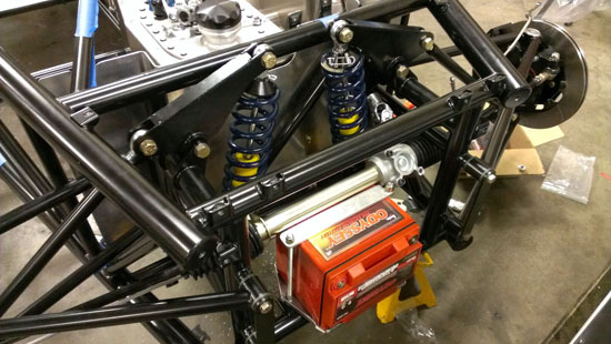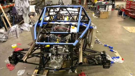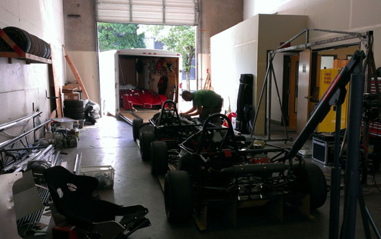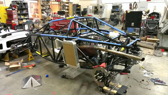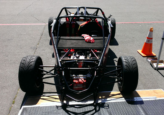 Each of the cars will get their own blog updates eventually. In the meantime the D2 is coming together. This is the #2 chassis that Pete volunteered as our demo car for the trip (no, we didn't twist his arm or anything :). It won't be complete as a car for a while, not until after the #1 car is delivered with bodywork and all, but it is very close to being drivable as a chassis which will have to suffice for demo purposes.
