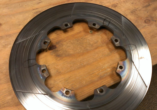 Another thing learned from Pete's D2 is that consumables are consumed at a very modest rate. It's looking like tires are good for 16+ events, brake pads for 8+ and rotors for 16+. And this is not just coasting around, the D2 is the fastest car at pretty much every event it shows up at. We did discover some cracking on one brake rotor after the 17th track outing. This compares favorably to just 6 trackays that I could get out of the Mini on a set of rotors, or 8 in the Elise. Also, the cracking may have to do with all the brake testing (bias and pads) that Pete has been doing. The actual wear is not too bad and with less abuse they'll most likely go longer. The other 3 are OK.