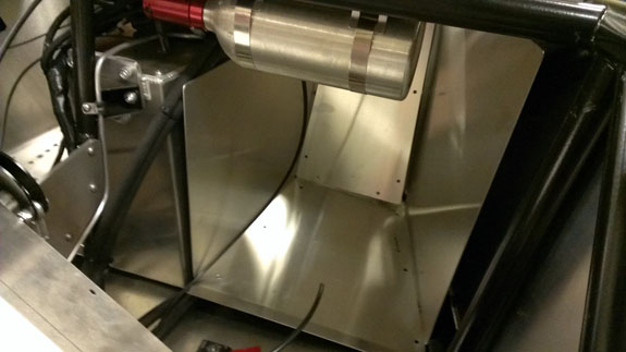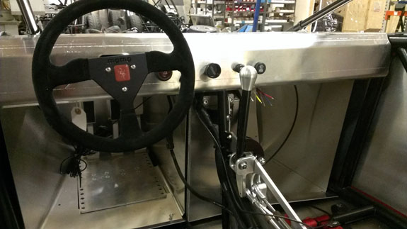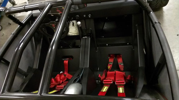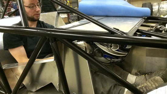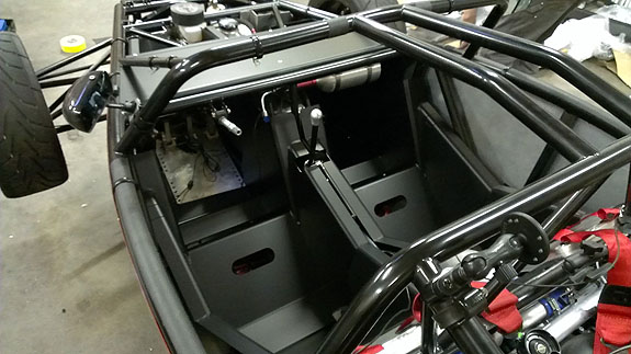 The day before the first set of the new interior panels came in. Tristan welded them together and installed just in time for this outing. We didn't have a chance to cover the dash so the reflections off the aluminum were a bit bright at times, but not an issue in general. The standard interior will be all black to minimize glare, with some removable padding that could be done in an accent color.