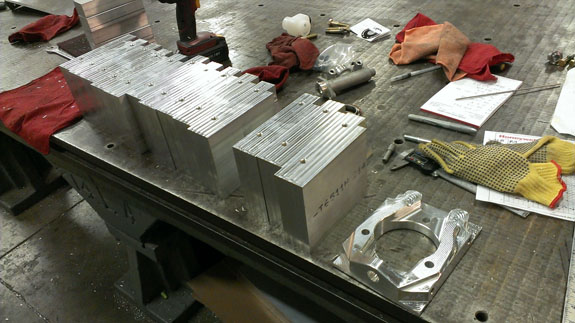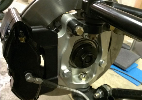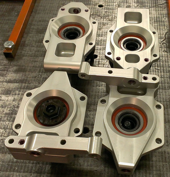 These use Porsche 911 bearings and high strength hubs. A number of brake packages are available as well. E-mail me for more info. 11/22/13 Pete had a great two days at Thunderhill (track days 23 and 24 for his car) and the verdict is that the new seats are a success. Combined with Adam's earlier feedback and my own experience, I'm pleased. This weekend we have some visitors and very good discussions which will lead to some pretty cool announcements soon :) The momentum is gathering... In the meantime, there's steady progress at the shop. The CNC machines are running churning out parts - brake brackets recently, brake hats at the moment.