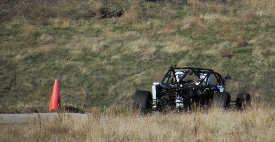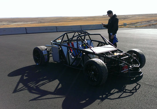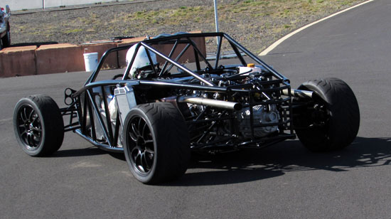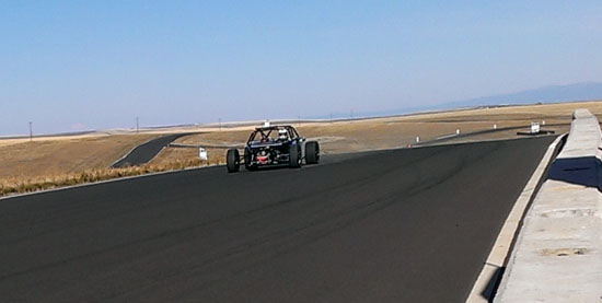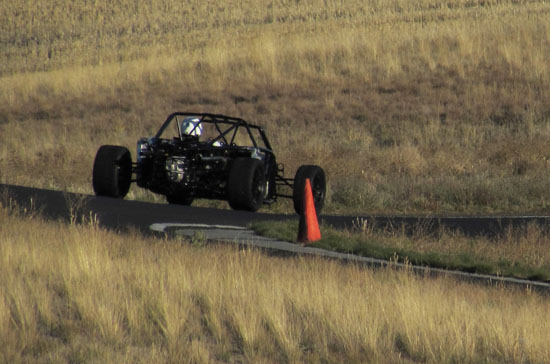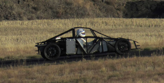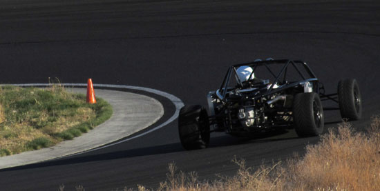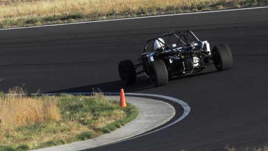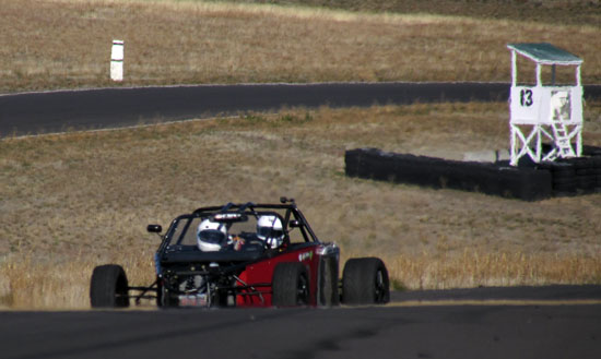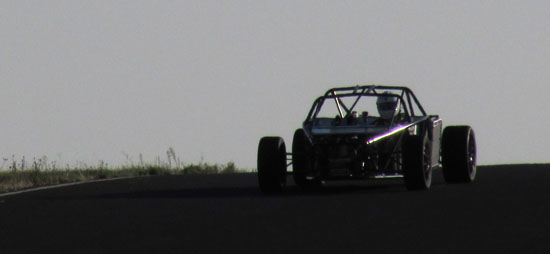 I'm really eager to see the D2s with bodywork on (I know I'm not alone in that! ;). Hoping to still get a fully dressed D2 out to the track this year. In the evening there's not much happening in Grass Valley but M managed to find a great restaurant not too far away in Goldendale - the Glass Onion. Excellent food and exceeding all expectations we had of a place this far from anywhere. Nice selection of local wines, too. On the second day we also had a very cool car join us - the Mach 40 created by Eckert's Rod and Custom. The craftsmanship is very impressive and even more so given the fact the car actually works, and quite well. Dave says he doesn't build trailer queens, he builds drivers and this car clearly backs that up. Check out the design details and build pictures on their site. It's a very different type of car than what we build with different priorities in design and construction. Always cool to see a well thought-out, well executed machine. All in all, a great couple of days. Much was learned as always, much fun was had and now much work awaits back at the shop. As a fitting conclusion to the trip we were treated to a spectacular moonrize on the way home. As far as experiences go, this trip has been a good one. 10/29/13 The weather is now getting marginal but the forecast for today looked promising, so we scheduled the day for Alex to come out and drive his car on track for the first time. His original plan was to wait until the bodywork is done but this was probably the last chance this year weather-wise. The air and track were cold, about 40 degrees F, as we unloaded but the sky was clear with no wind.