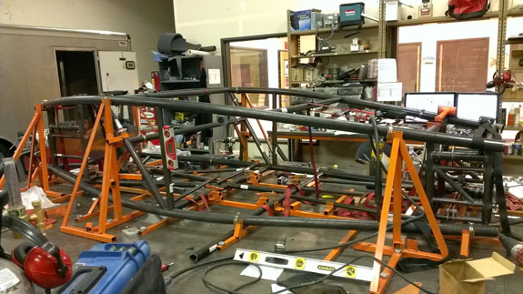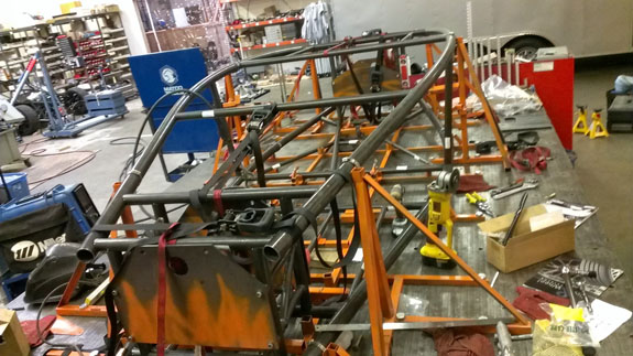The #5 chassis is taking shape in the jig as well.