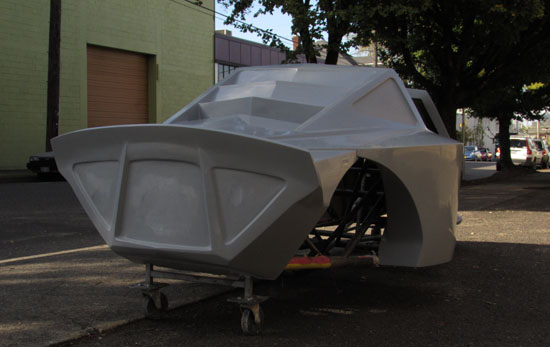 The last bit of news - we now have 4 new D2 orders and strong interest from at least three other potential customers. Seems the word is getting out :) Right now the next available delivery slot is mid March. If you want a D2 in time for next track season, think fast! 9/26/13 A few more things to announce. First, we've sold another D2 - chassis #9. The next available is #10 with target delivery at the end of March, 2014. Another item is that the plug prep is fially done and it turned out very nice. It's been dropped off at M&W Fiberglass where the molds and the actual parts will be made. There will be access panels on the nose and tail which will be created as part of making the molds. To this end we had to figure out what size/shape the panels should be. The goal is to be able to at least transport two helmets to the track with a passenger in the right seat, so we figured out two locations - one in the nose and one under the passenger side of the dash.