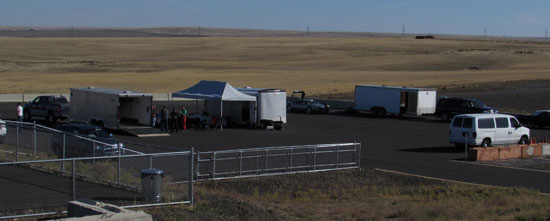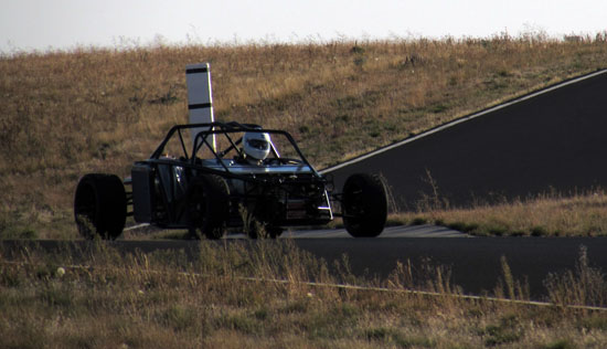 There is a very fine layer of dust on the track surface and the car picks up a bit of a cloud as it goes by - you can see it in the picture above, next to right rear tire. It's a cool effect. With no wind it's very quiet and you can actually hear the D2 around almost all of the track. Normally its subdued exhaust sound disappears except on the front straight. After a break Alex heads out for another session, this time staying out for a full 40 minutes and starting to work up to speed. He's feeling more confident with the car and the track and ends up with a best of 154.9 which is really good for an initial shakedown. After the session the car checks out fine - no leaks, no issues. The driver is pretty tired though after nearly 1.5 hours on track and has a long drive south ahead so we decide to call it a day.